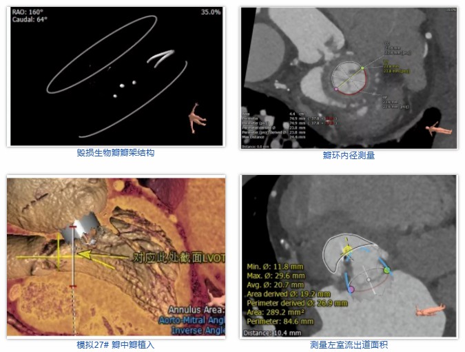 术前经详尽评估患者病情,通过CT重建测量瓣环直径、左室流出道面积。结合之前外科换瓣手术入路,决定采用经心尖途径行二尖瓣“瓣中瓣”手术。术中选用27号Renato®球扩式瓣中瓣,顺利通过心尖途径植入。最终瓣中瓣植入位置理想,功能表现出色,左室造影及经食道超声观察无明显瓣中及瓣周反流。二尖瓣峰值流速由术前3.1m/s降至1.5m/s,平均跨瓣压差由8.3mmHg降至3.6mmHg。