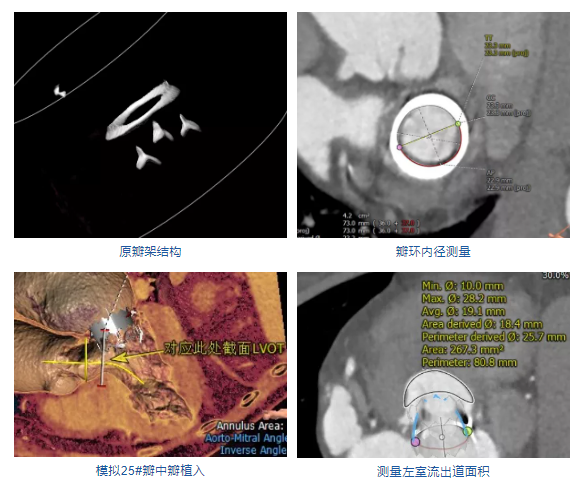 术前经详尽评估患者病情,通过CT重建测量瓣环直径、左室流出道面积。结合之前外科换瓣手术入路,最终决定采用经心尖途径行二尖瓣“瓣中瓣”手术,患者既往植入27#Hancock II,选用25# Renato®球扩式瓣中瓣。手术过程顺利,瓣中瓣植入位置理想,功能表现出色,左室造影及经食道超声观察无明显瓣中及瓣周反流。二尖瓣峰值流速由术前2.5m/s降至1.3m/s,平均跨瓣压差由11mmHg降至1mmHg。