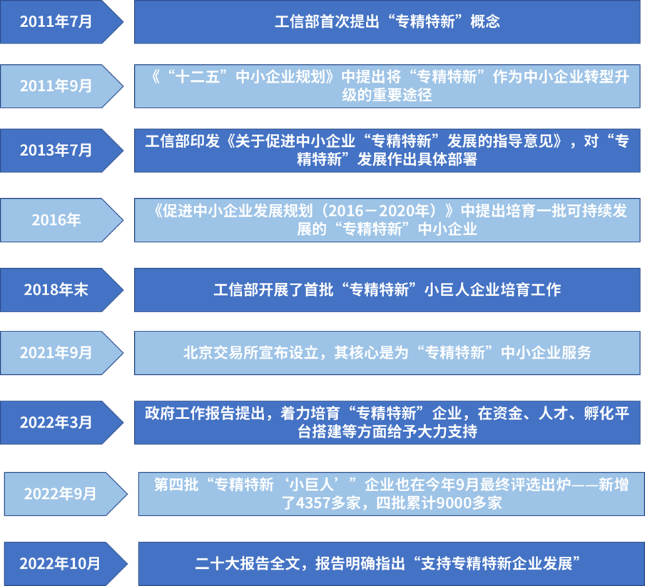 自2011年起,工信部就首次提出了“专精特新”的概念,随后我国便不断加大对专精特新企业的培育力度。