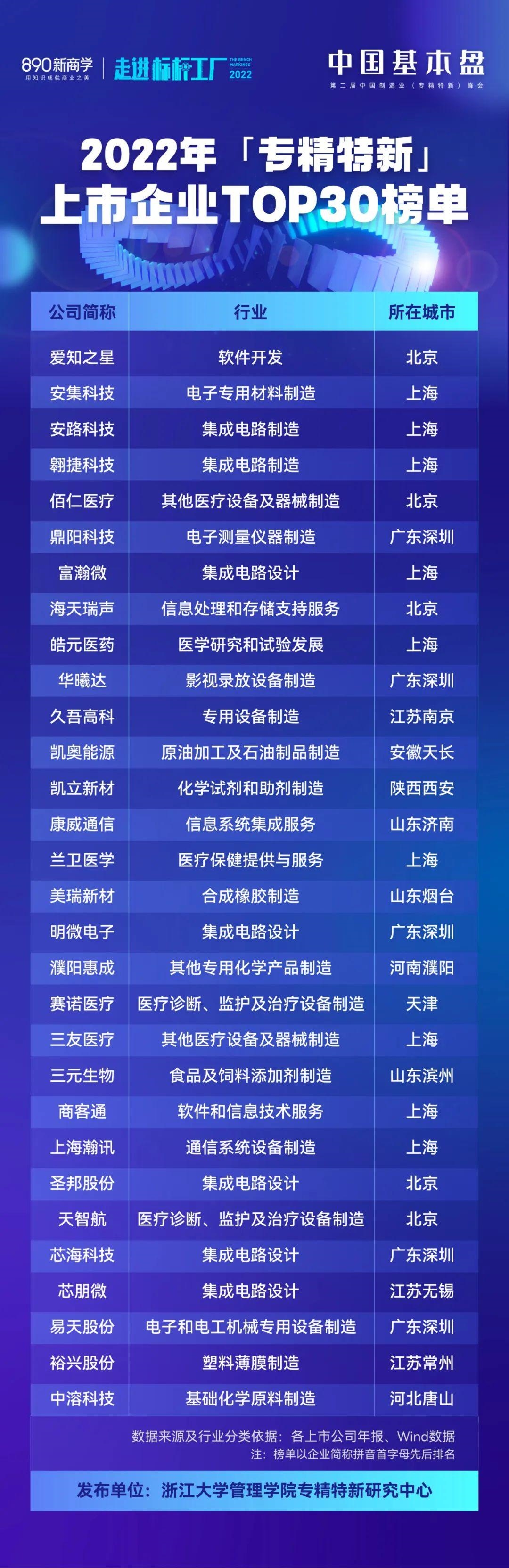 在之后的每一年,专精特新研究中心也将连续披露当年的TOP30榜单,以期持续跟踪专精特新上市企业的发展状况。