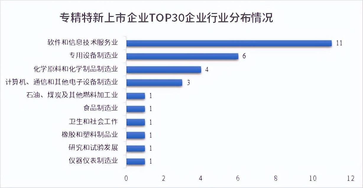 本次TOP30企业主要分布在软件和信息技术服务业、专用设备制造业、化学原料和化学制品制造业,占比73.3%。